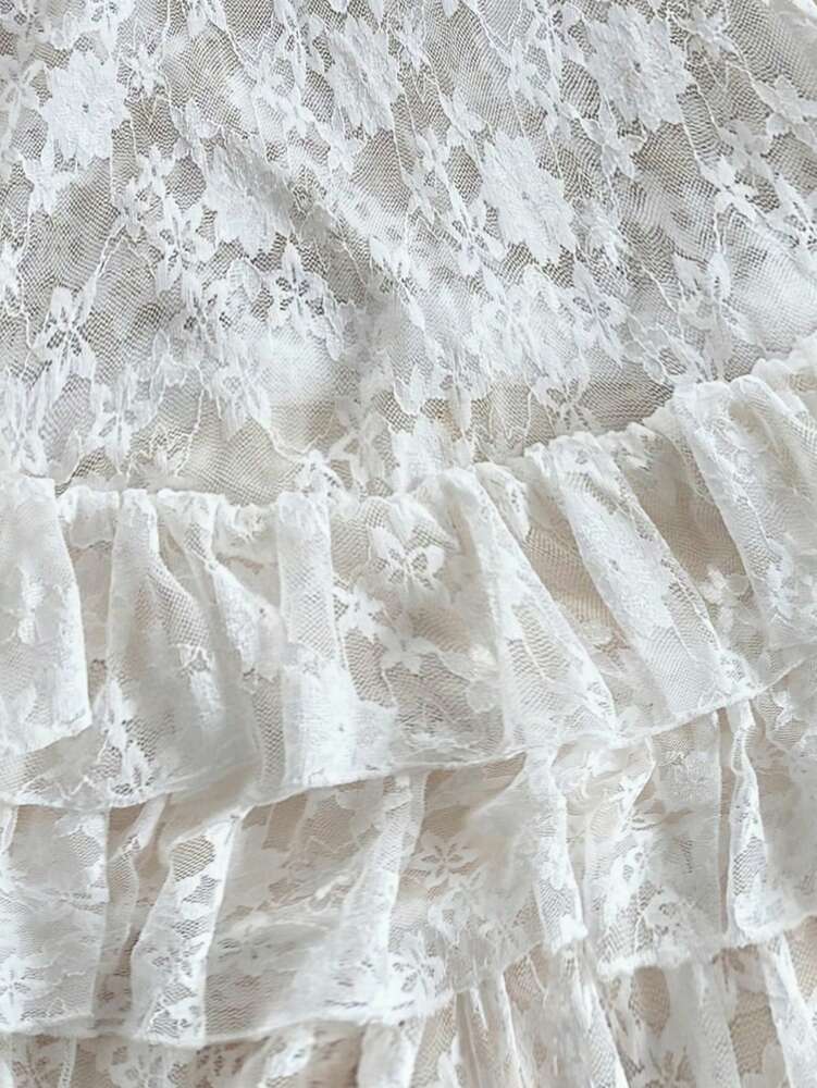 Women's Pure Lace Ruffle Knit Jumpsuit Elegant Vacation Romper Off Shoulder Backless Bohemian Fairycore Summer Spring Graduation Outfit